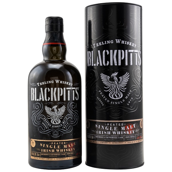 Der Teeling Blackpitts Peated Single Malt Irish Whiskey ist nach dem Teeling Pot Still die zweite Abfüllung, die in der Teeling Brennerei destilliert wurde. Und es ist der erste torfige Whiskey der Brennerei. Der BlackPitts ist wie bei Teeling üblich dreifach gebrannt und reifte in einer Kombination aus Ex-Bourbon und Ex-Sauternes Wine Casks. Nicht gefärbt und nicht kältefiltriert!