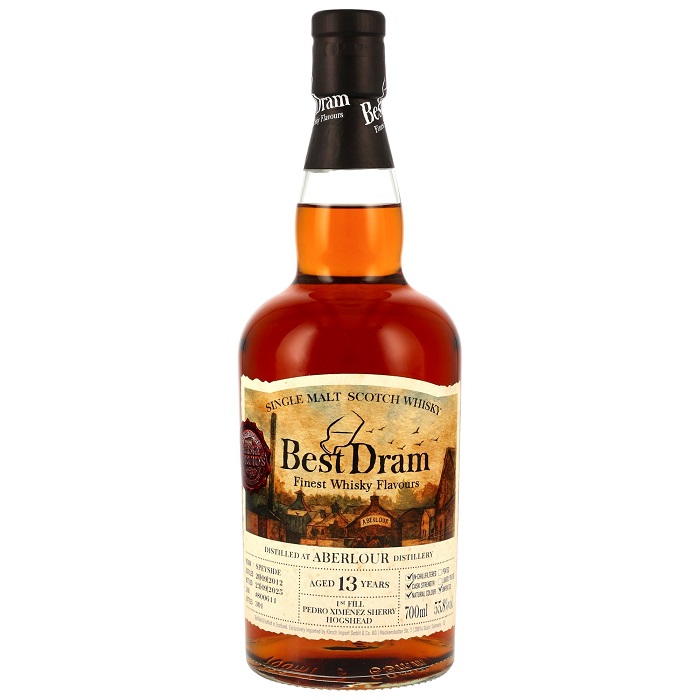 Destilliert am 20.09.2012, abgefüllt am 23.09.2025. Fasstyp First Fill Pedro Ximénez Sherry Hogshead. Einzelfassabfüllung mit der Fassnummer 800611, nur 301 Flaschen. Abgefüllt von Best Dram, ungefärbt und nicht kältefiltriert!