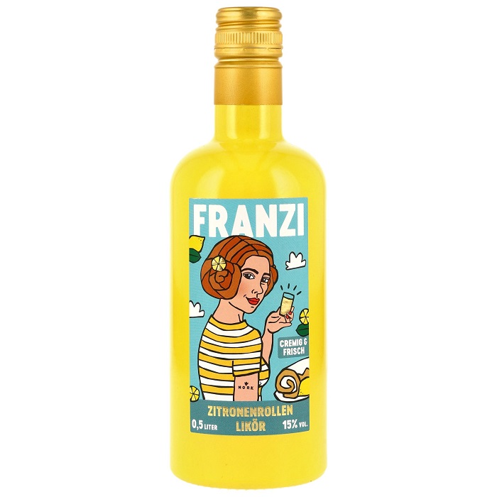 Franzi Zitronenrollen Lkiör, 15% vol. Hergestellt von NORK GmbH & Co. KG Sillemstraße 32, 20257 Hamburg.