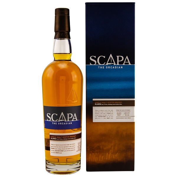 Ausgebaut in First Fill American Oak Casks. Danach erhielt der Whisky sein Finish in Fässern, die vorher Peated Malt Whisky enthielten. Dadurch hat der Glansa eine leichte Rauchnote. Der Scapa Glansa ist der erste leicht rauchige Single Malt der Brennerei.