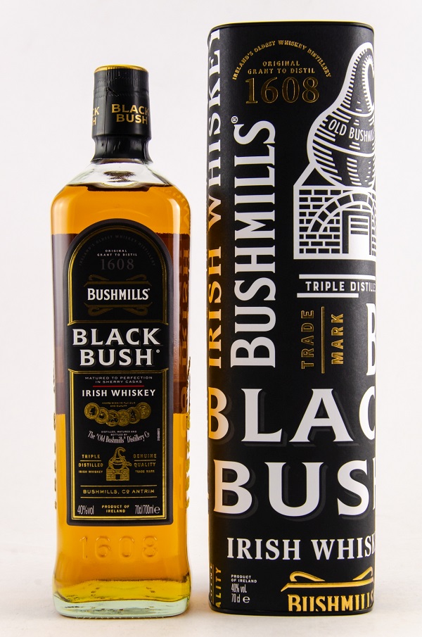 Im Bushmills Black Bush findet sich ein außergewöhnlich hoher Anteil von dreifach destilliertem Malt Whiskey wieder (ca 80%), gereift in ehemaligen Oloroso-Sherryfässern, kombiniert mit süßem, portionsweise destilliertem Grain Whiskey.