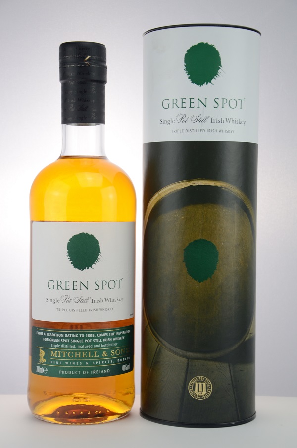 Pot Still Whiskeys werden aus gemälzter und ungemälzter Gerste hergestellt. Diese Art der Whiskeyherstellung gibt es nur in Irland. Der Green Spot wird in der Midleton Distillery dreifach gebrannt, und reift für mindestens 8 Jahre in Ex-Bourbon und Ex-Sherry Fässern. Ein Pot Still Whiskey mit einer sehr fruchtigen Note! Hergestellt für Mitchell & Son Wine Merchants in Dublin.