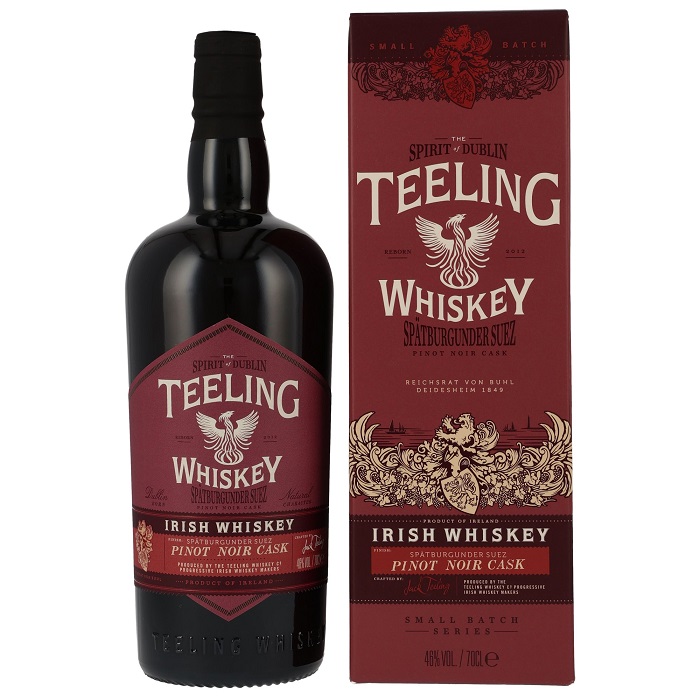 Für diesen Whisky wurde der Teeling Small Batch Whiskey, ein Blend aus 80 Prozent Grain Whiskey und 20 Prozent Malt Whiskey, für ca. 3 Jahre in Pinot Noir Rotwein Fässern nachgereift. Die vorherige Reifung fand in amerikanischen Ex-Bourbon Fässern statt. Die Pinot Noir Fässer stammen aus der Suez Collection von dem renommierten Weingut Reichsrat von Buhl aus Deidesheim in der Pfalz. Limitierte Small Batch Abfüllung!