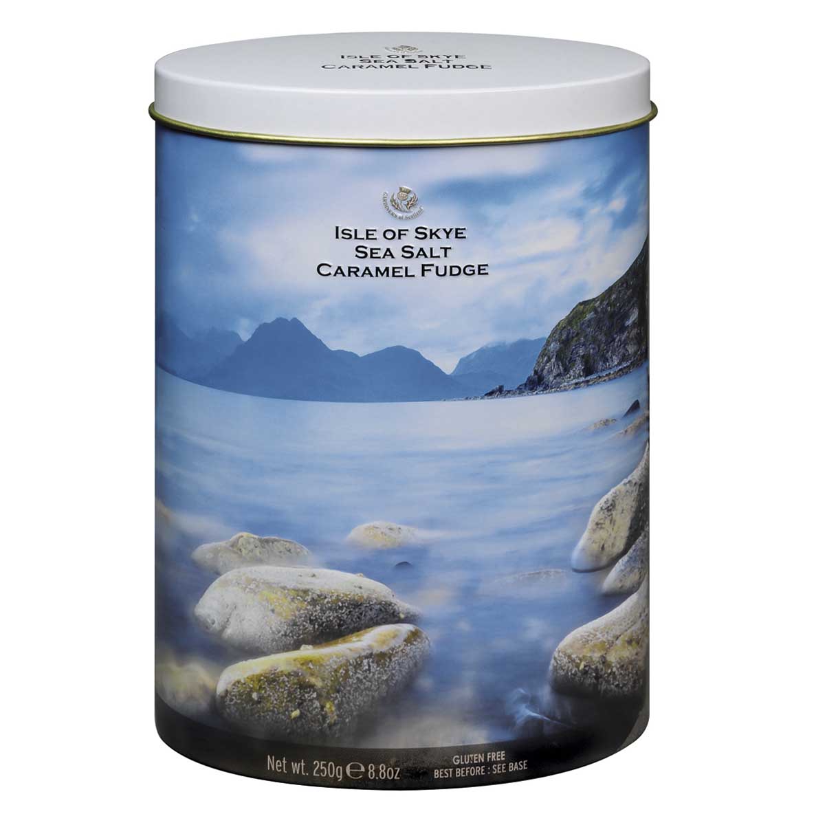 Isle of Skye Sea Salt Fudge, 250g Dose. Hergestellt von Gardiners of Scotland, UK. Cremiges Butterkaramell mit dem Meersalz der berühmten Isle of Skye.