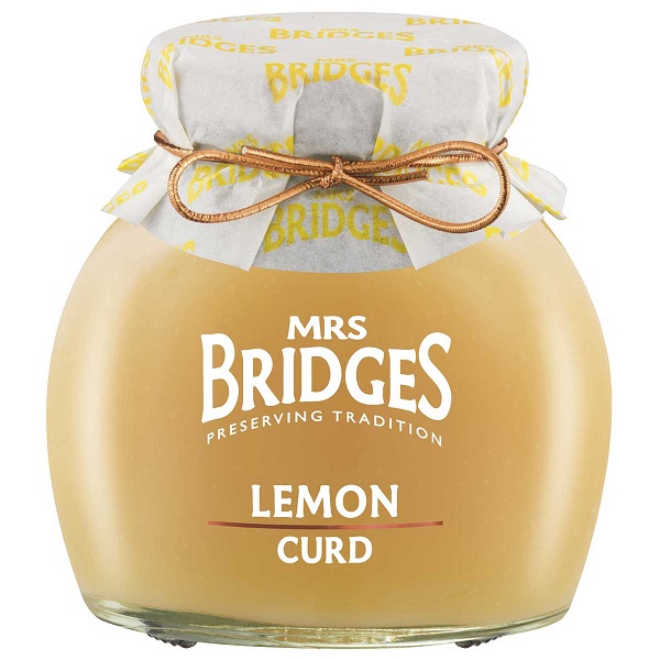 Mrs Bridges Lemon Curd - Zitronen-Creme mit Butter und frischen Eiern, 340g Glas. Geeignet als Brotaufstrich oder zum Kuchenbacken. Hergestellt in Schottland von Mrs Bridges, UK. für Top Food GmbH, Deutschland.