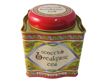 Scottish Breakfast Tea 125g, 50 Teebeutel. In einer sehr dekorativen Blechdose im Scottish Thistle Design. Hergestellt von der Edinburgh Tea & Coffee Company für Royal Tara Craft Galway, Ireland.
